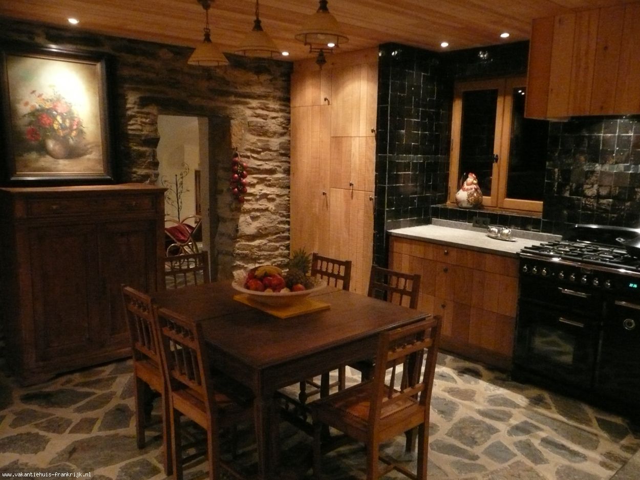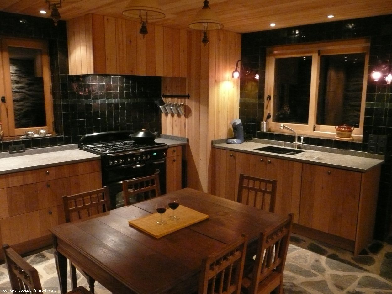Ons huis heeft een centrale volledig ingerichte keuken met fornuis met grote 5-delige kookplaat op gas en 2 ovens op electriciteit, microgolf , afwasmachine ,grote frigo met 0 gr laden en vriesvak. In de knusse bemeubelde living staat een houtkachel , 2 tweepersoonszetels , salontafel , grote kast en ander meubilair .