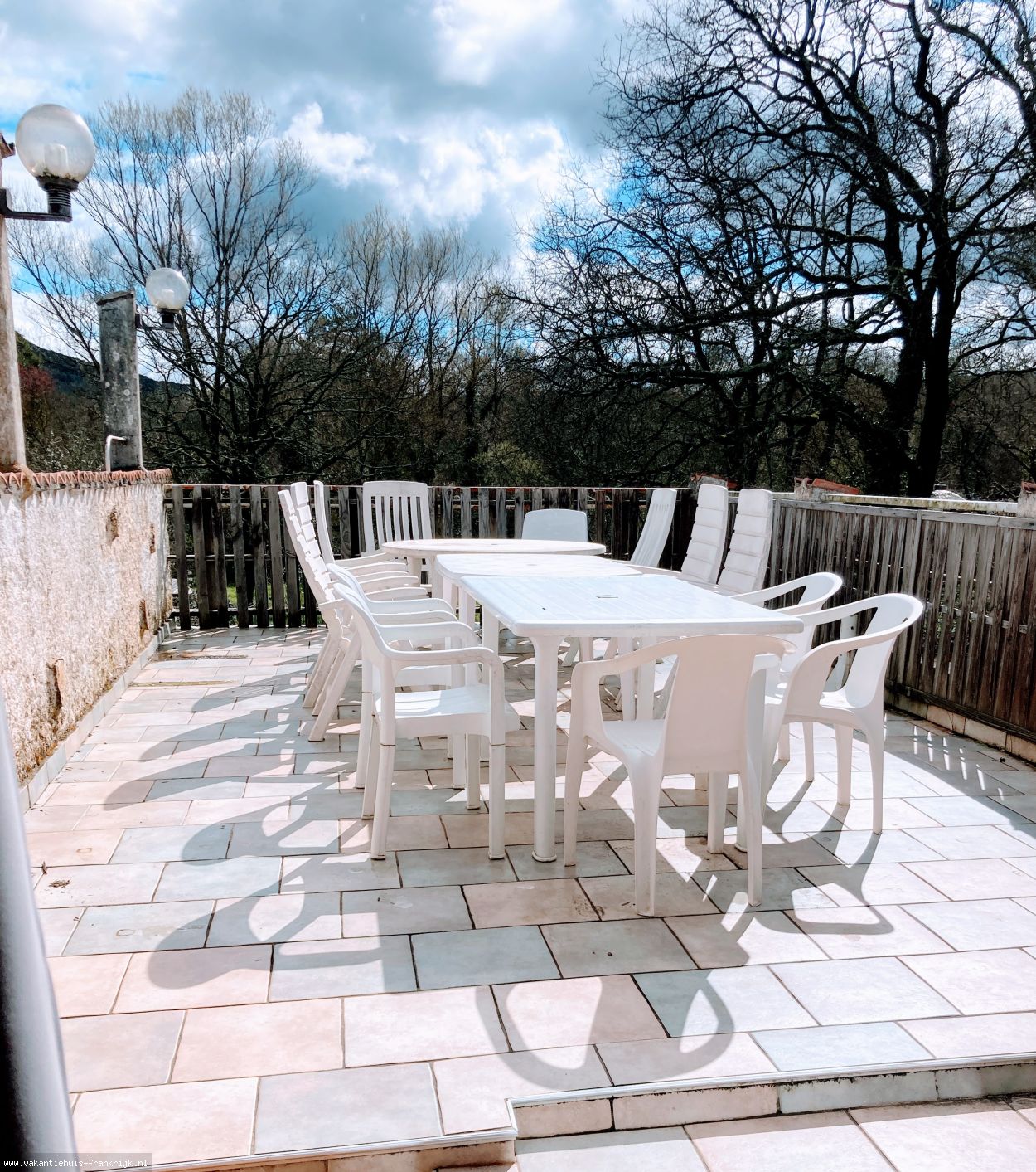 Op de eerste verdieping is er een ruim zonneterras van 3x10m wat tevens zorgt voor de nodige schaduw op het gelijkvloers. Er zijn geen directe buren, enkel een paarden manège en beboste weiden en velden, de dichtste buur (een Belg) woont op 600m.
