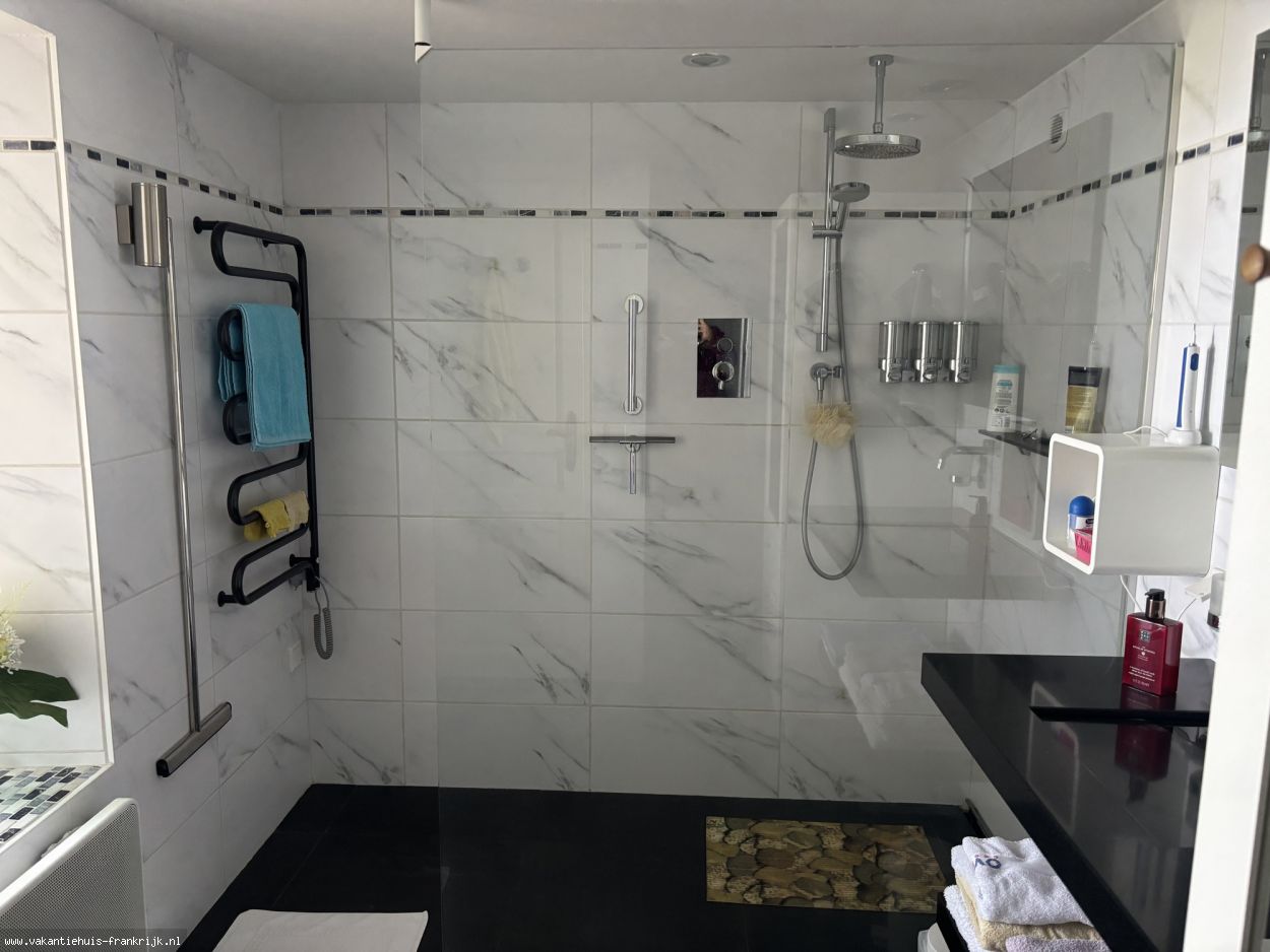 weilanden en een badkamer met luxe wastafel, toilet en inloopdouche en elektrische wand en vloerverwarming.