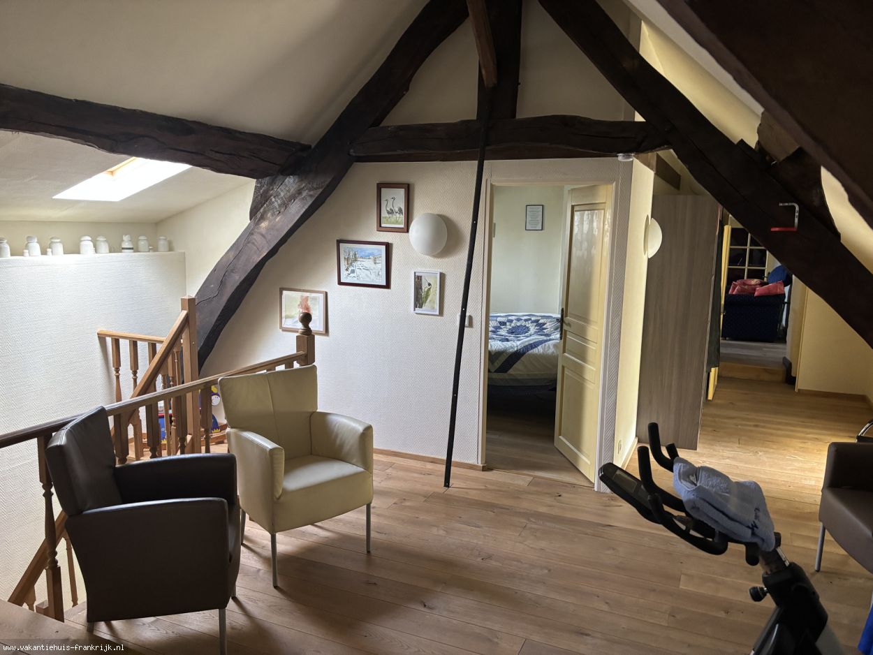 In de hal gaat u met een vaste trap naar de bovenverdieping met op de overloop een zithoek, een tweede badkamer met