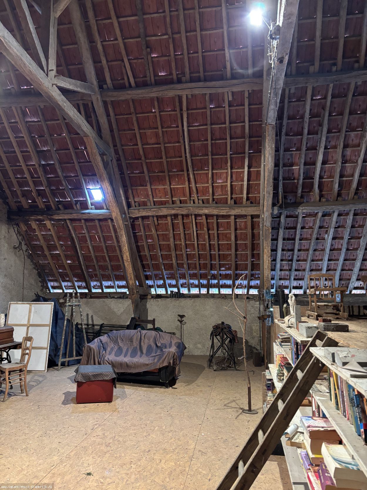 Op het terrein staat een ruime vrijstaande schuur, bestaande uit meerdere secties. Links bevindt zich een werkplaats met een dubbele wastafel, een badkamer (toilet, douche, wastafel) ideaal om jezelf na het tuinieren af te spoelen zonder het huis in te hoeven en een aansluiting voor een wasmachine. Via een trap bereikt u de eerste verdieping, met extra opslagruimte en twee kamers, momenteel in gebruik als hobbykamer.