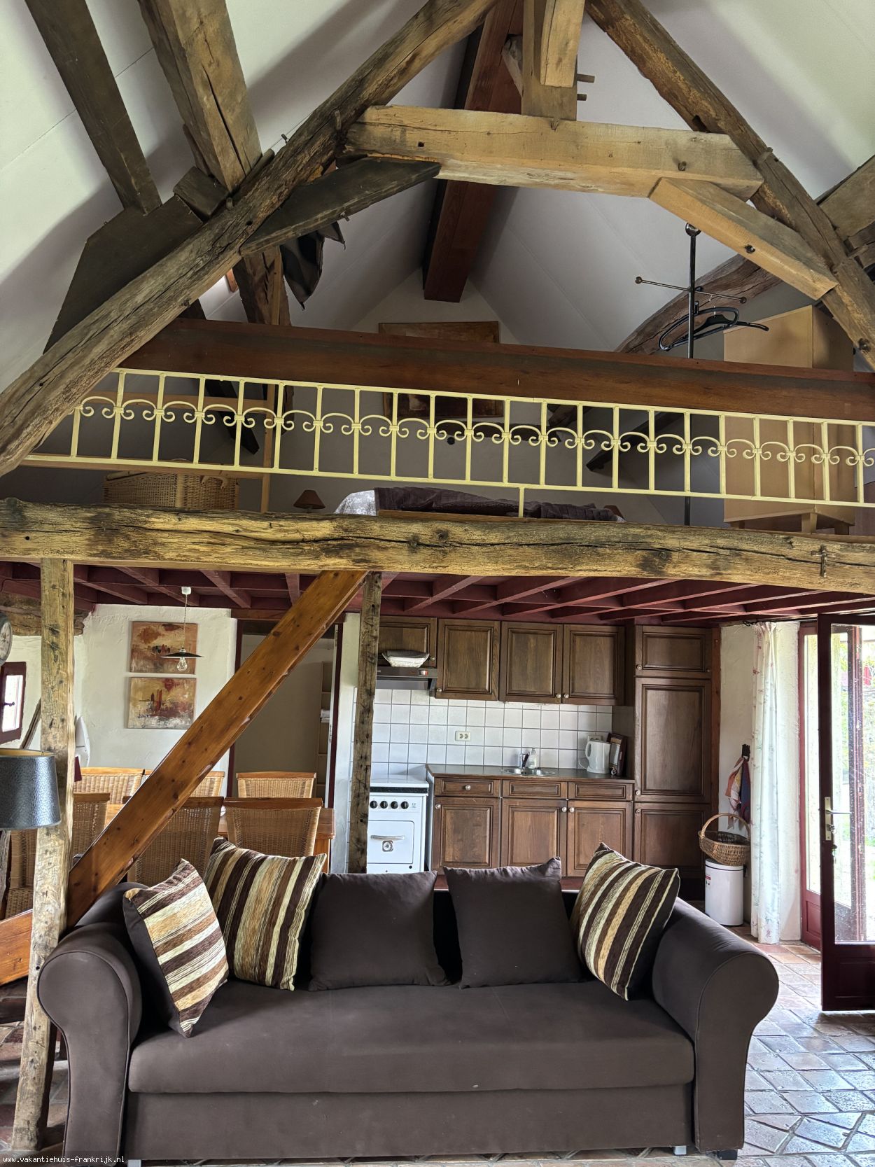 Tegenover het woonhuis staat een volledig gerenoveerd vrijstaand huisje. Bij binnenkomst komt u in een open keuken met een ingebouwde koelkast en los gasfornuis. Deze ruimte loopt door naar een eethoek en een zithoek met houtkachel. Een trap leidt naar de mezzanine, die dienst doet als slaapkamer.