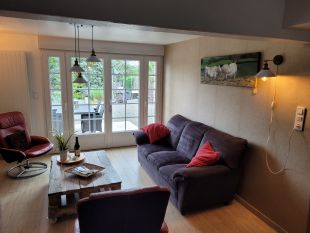Het appartement is geheel gelijkvloers (ideaal als u moeilijk ter been bent. Geen trappen binnen en/of buiten) en gesitueerd op de begane grond van onze woning en kan betreden worden via de tuindeuren aan de voorzijde. Het bestaat uit een huiskamer met keuken, een badkamer (ruime Italiaanse inloopdouche van 1.35m x 0.90m, toilet en wastafel. Er is ook een douchestoel en/of handgreep/wandbeugel beschikbaar) en twee slaapkamers. Er is tevens een aparte saunaruimte met sauna, stortemmer, zeer ruime douche van 1.40m x 1.00m, toilet en wastafel aanwezig, die door de gasten als een extra badkamer kan worden gebruikt.