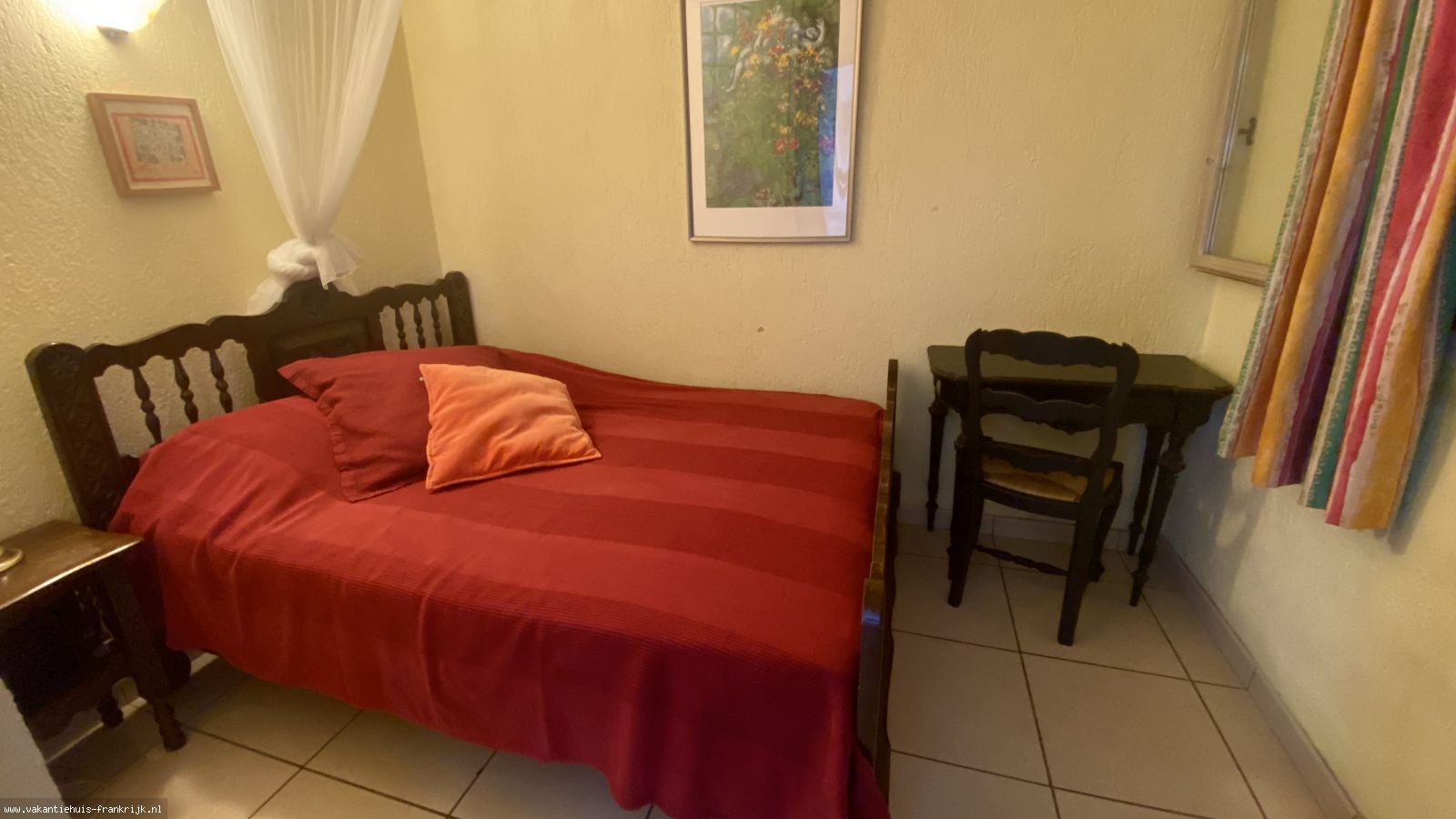 De derde slaapkamer van het vakantiehuis heeft een prachtig uitzicht op de stad Grasse en beschikt over een eenvoudige badkamer. In het souterrain is overigens nog een studio met pantry en wasmachine en een aparte slaap- en badkamer.