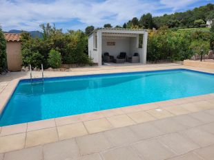 Het zwembad meet 10m op 5m (diepte van 0,80m tot 2,40m), en heeft een groot trappendeel van 2m op 2m.