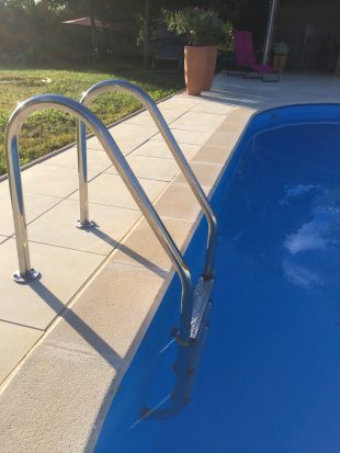 Bij het zwembad staan 6 ligstoelen en voldoende parasols. Een douche met koud en warm water maakt het geheel compleet.