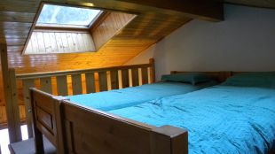 Ons appartement ligt op loop/ski afstand van de lift van de Linga. Vanuit de woonkamer kijk je op de langlaufloipe. Het appartement is licht, het heeft 2 openslaande deuren naar het balkon. Doordat het appartement zich onder de kap bevindt, is er in alle vertrekken een oplopend balkenplafond.