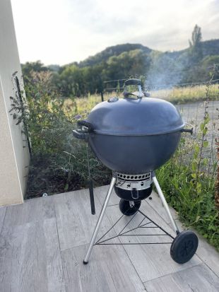 Buiten staat een barbecue.