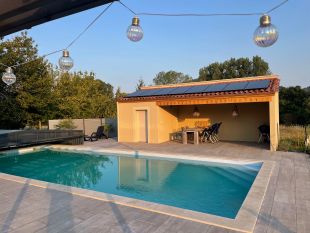 Het heeft een groot zwembad van 12 x 5m met een diepte van 1,2m aflopend naar 2m.