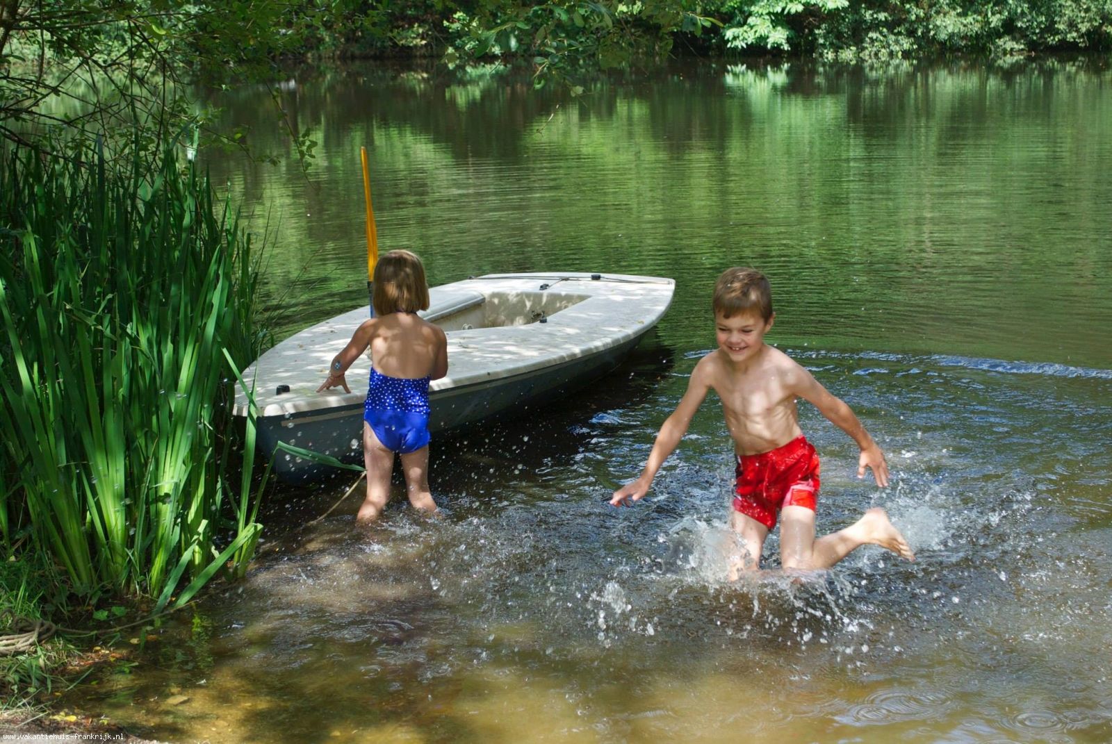 Nu gewoon lekker in de zomer om te kunnen zwemmen of dobberen in ons privémeertje dat ruim 2500 m² groot is. Ook vissen op kleine witvisjes of snoeken. Zelfs de ijsvogel is te bewonderen aan de rand van het meertje. Libelles in allerlei soorten en maten zweven rond het water. Heerlijk luieren en genieten van het weidse uitzicht vanaf de heuvel. De totale oppervlakte van ons achtererf, het kampeerbos op de bergheuvel en meertje is ongeveer 1 hectare.