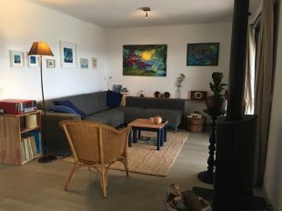In de grote ruimte is een DVD Home Cinema gemaakt met electrisch grootbeeldscherm 2.60 X 1.62, DVD-Speler, grote collectie DVD films, Beamer, Versterker met Surround geluidsinstallatie.(alleen te gebruiken in overleg).