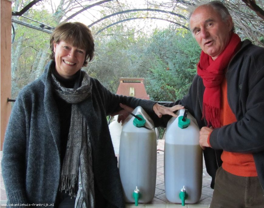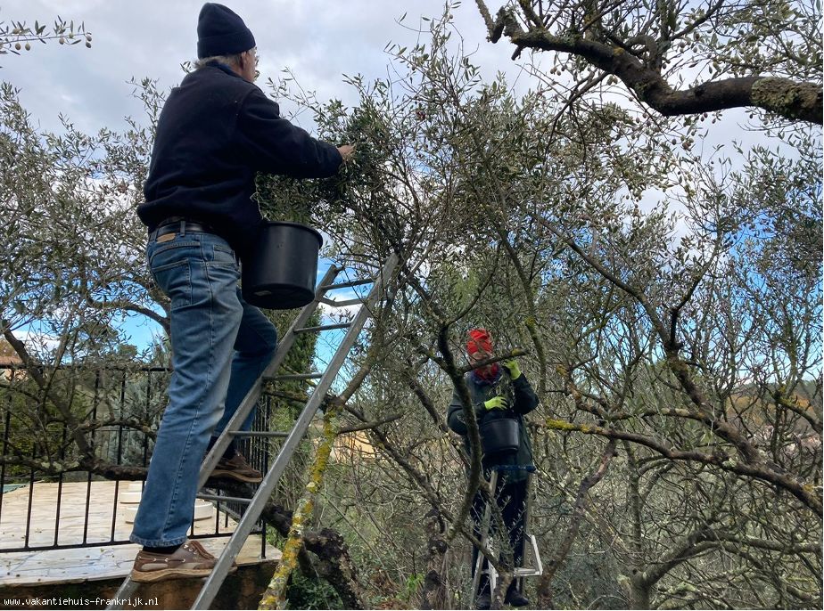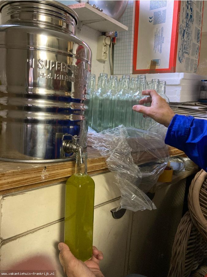 De tuin van 2500 m2 is terrasvormig aangelegd en is beplant met oleanders, lavendel, olijf- en vijgenbomen. We plukken 's winters onze eigen olijven en laten ze persen tot onze eigen olijfolie.