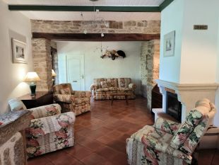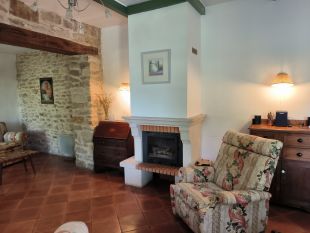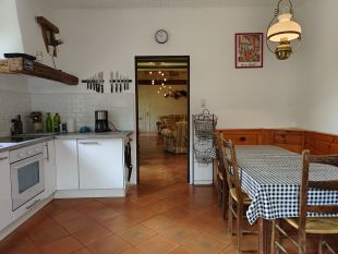 De boerderij is volledig gelijkvloers met een grote woonkamer met houtkachel en toegang tot het terras. De ruime volledig ingerichte keuken heeft een 8 persoons eethoek. In de bijkeuken staat een wasmachine.