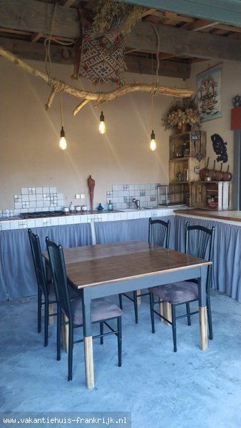 In het hoofdhuis vindt u een ruime sfeervolle woon/eetkamer en mooie open keuken (inductiekookpllaat, afwasmachine, koelkast met vriezer). Verder 1 slaapkamer met een tweepersoonsbed van 1.60 m bij 2.00 m. en openslaande deuren naar het terras.