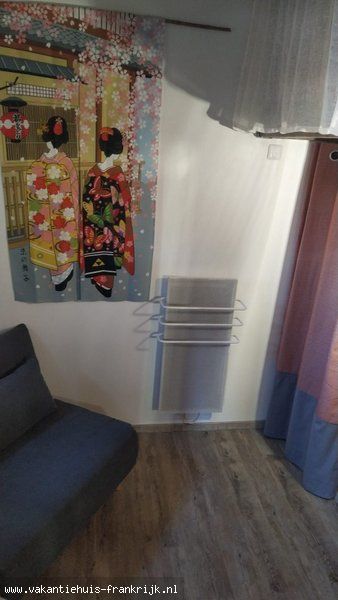 Naast de buitenkeuken een studio met een tweepersoonsbed van 1.60 m (mezzanine) en een badkamer met douche en toilet.