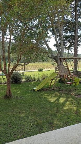In de tuin het grote zwembad van 13 x 5 meter, diepte aflopend van 1.20 tot 2.00 meter. Het zwembad wordt ook gebruikt door de eigenaren. Het zwembad heeft een abri die dicht kan waardoor de temperatuur van het water aangenaam blijft. Het zwembad is in principe open van 15 mei tot eind september.