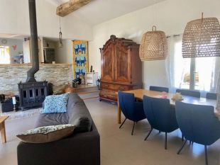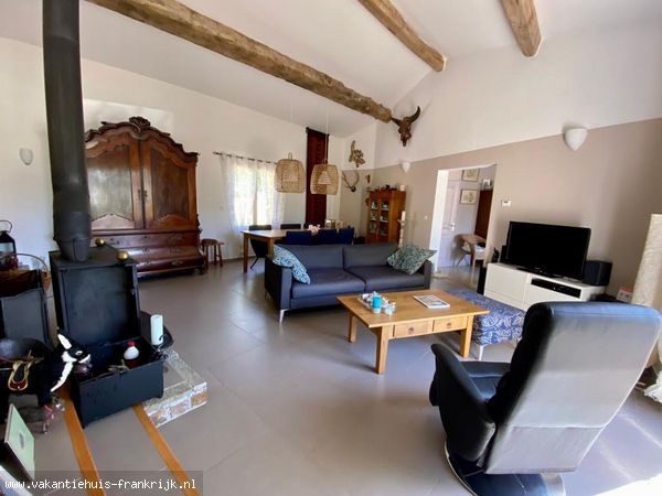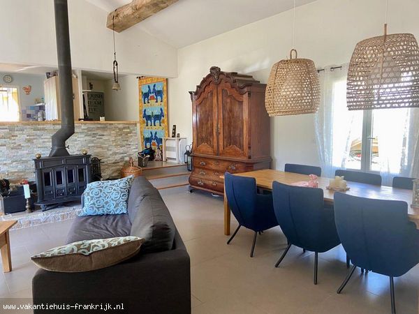 In het huis een zeer ruime volledig ingerichte open keuken ( afwasmachine, oven, keramische kookplaat, cooker, senseo en filterkoffiezetapparaat, koelkast, vriezer). Aan de keuken grenst de sfeervolle woonkamer. Er is een piano waar door pianisten op gespeeld mag worden. Aan de woonkamer grenst een sfeervol overdekt terras.