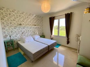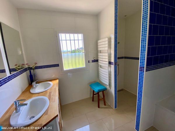 Er is 1 ruime slaapkamer met een tweepersoonsbed ( 1.80 breed), 1 slaapkamer met twee éénpersoonsbedden van 0.90 breed en een derde dlaapkamer met een tweepersoonsbed ( 1.60 breed). Er is een aparte badkamer met douche, bad en wastafel. Ook een apart toilet.