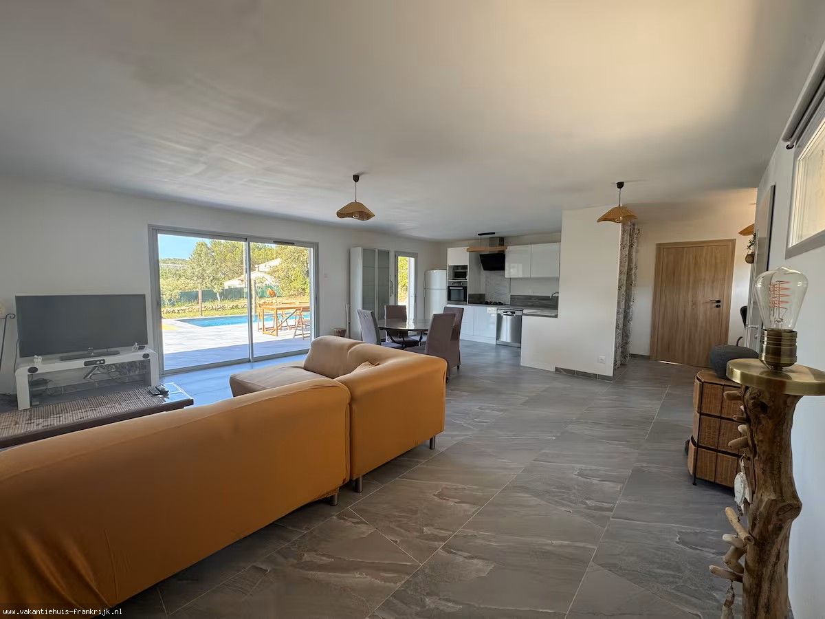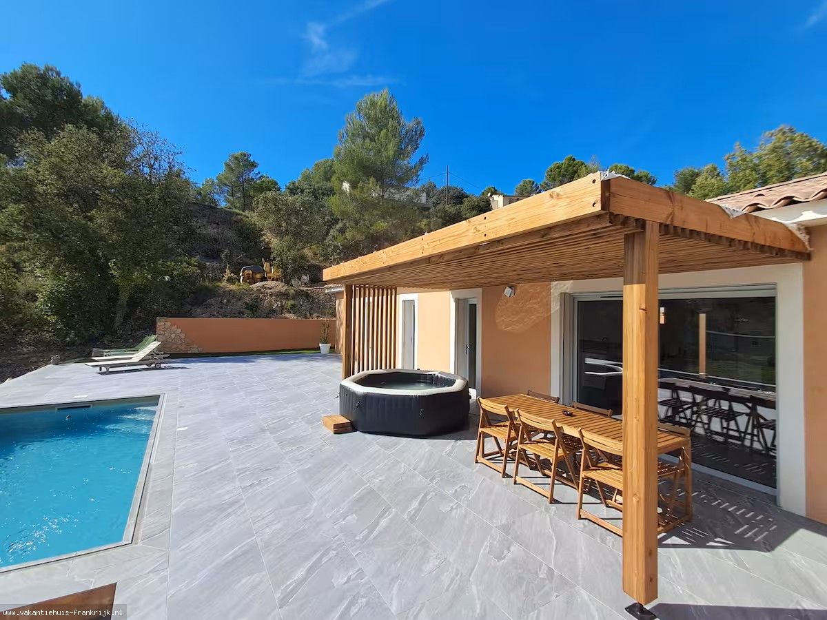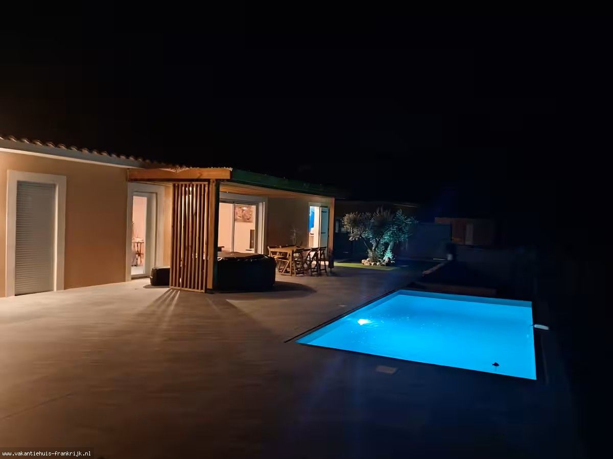 Door openslaande deuren komt u uit op een groot ( gedeeltelijk overdekt) terras. Daarachter ligt uw zwembad. Op het terras staat de jacuzzi. Achter het huis ligt een jeu de boules baan. Achter het zwembad is een veldje met net om te volleyballen of te badmintonnen. De pingpongtafel staat aan de zijkant van het huis.