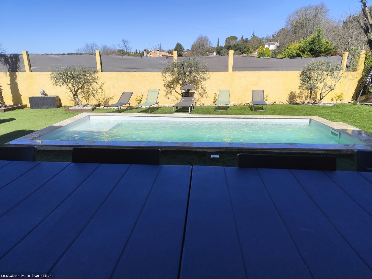 Maison La Colombe ( 150 m2) is een comfortabel ingericht vakantiehuis dat ligt op een omsloten terrein van 1000 meter in een villawijkje op circa 1 km afstand van het Provencaalse dorpje Ginasservis in de Provence Verdon. Uw eigen privézwembad maakt dit huis tot een heerlijke vakantieplek. Het huis heeft 4 slaapkamers, 2 badkamers en wordt verhuurd aan maximaal 6 personen. Vanuit het huis loopt u in twee minuten het bos in en u loopt in 10 à 15 minuten naar het dorp. In Ginasservis vindt u een bakker, een supermarkt, een restaurant en een café. Het dorp ligt op 10 minuten rijafstand van Vinon sur Verdon, 50 minuten van de stad Aix en Provence en 40 km van de fameuze Gorges du Verdon en het Lac de Sainte Croix. De Middellandse Zee is een uur rijden. Voor wandelaars zijn er eindeloos mooie wandelroutes, o.a. GR 99.Op de begane grond van het huis vindt u een grote woon/eetkamer met open keuken. De keuken is volledig ingericht ( afwasmachine, elektrische kookplaat, oven etc). Vanuit de woonkamer loopt u zo het overdekte terras (30m) op.