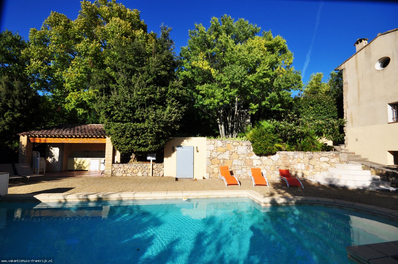 Het zwembad (zout) naast het huis meet 4 bij 10. Naast het zwembad vindt u een buitenkeuken met afwasmachine, koelkast, kookplaat, douche en toilet. Een elektrisch roldek over het zwembad is een goede beveiliging voor kleine kinderen. WIFI en TV met Franstalige zenders aanwezig.