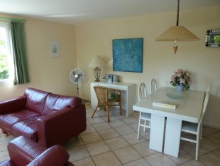Entree met toegang tot toilet. Woonkamer: met airco, bankstel, fauteuils, salontafel, boekenkast, meubel met televisie en satelietontvanger met Nederlandse tv, stereo-toren, openslaande deuren naar het terras. Eetkamergedeelte: tafel met 6 stoelen. Open keuken: 4-pits inductieplaat, oven, afzuigkap, vaatwasmachine, koelkast en magnetron, koffiezetapparaat plus senseoapparaat en alle keukenbenodigdheden voor 6 personen. Badkamer: douche, ligbad en wastafelmeubel. 3 Slaapkamers: 2 tweepersoonsbedden van 1.40x2.00 en 2 éénpersoonsbedden van 0.90x2.00 voorzien van nachtkastjes en lampjes en kastruimte. De ouderslaapkamer heeft openslaande deuren naar het terras. Garage(niet geschikt voor uw auto) met wasmachine en extra koelkast en diepvriezer.