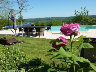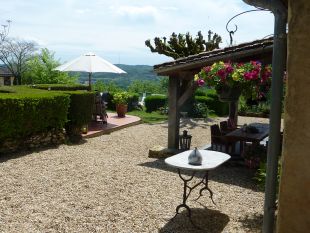 Het huis heeft een gedeeltelijk door oude muren omsloten tuin (3500 m2) met een volledig privé zwembad (6 bij 12 meter). Vanaf de diverse terrassen in de tuin kunt u genieten van het adembenemende uitzicht over de vallei van de Vezère. De aanwezigheid van een aantal lange eeuwenoude heggen, ooit aangelegd om de schapen bijeen te houden maakt de tuin zeer bijzonder. Een prachtige plek voor sport & spel (verstoppertje wordt zelfs voor ouderen een genot), maar ook een heerlijke plek om te luieren of te barbecuen.