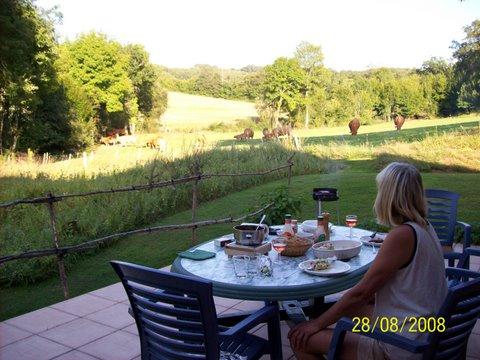 Rondom het huis ligt een grote tuin die overgaat in een vallei, heuvelachtig, met weilanden rondom, met een stroompje water. Een lekker onthaastende omgeving, met nog een echte mooie sterrenhemel, met vele wandelroutes, maar ook genoeg cultuur om de hoek.