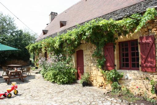Deze vrijstaande oude en rustige boerderij is gelegen in het mooiste deel van de Dordogne, de Perigord Noir, en ligt in de toeristische driehoek Sarlat/Domme/La Roque Cageac/Beynac. Het perceel ligt op een berg dus veel privacy en geen rechtstreekse buren.Het huis uit +- 1780 heeft een klassieke "cour" (binnenplaats), oude schuren waarvan er 2 zijn omgebouwd tot slaapkamers, een zwembad, veel land en bos. Sinds 2003 hebben we een eigen zwembad (750m-350m). Rondom het huis en bij het zwembad zijn meerdere terrassen, hierdoor kan je op elk moment van de dag genieten van de zon/schaduw. U kunt zelfs brood en pizza's bakken in onze oude broodoven.