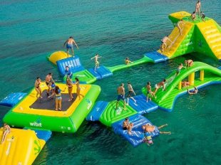 Het meer van Vinça met strandje, terras en luchtkussenpark is ideaal voor kinderen.