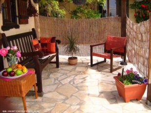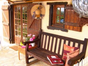 De gite heeft een eigen overdekte veranda met tafel en stoelen om te ontspannen en buiten te kunnen eten.