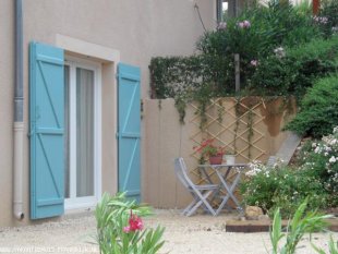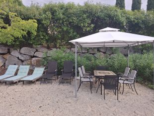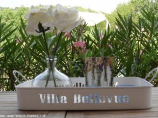 "Belle Vue" ligt gedeeltelijk op een helling zodat zowel beneden als boven een zitje gecreëerd is. Er is zelfs ruimte om op het fijne grind een spelletje jeu de boules te spelen!