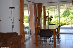 De woning is gelegen op een ruim en rustig opgezet villapark, net even buiten het beroemde en gezellig plaatsje Vallon Pont d'Arc, Zuid Ardèche, op een fantastische locatie, n.l. direct gelegen aan de oever van de rivier de Ardèche en via een trap gemakkelijk te bereiken.