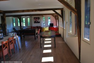 U komt binnen in de volledig ingerichte keuken,links heb je een grote eetkamer met houtkachel. Van daaruit kun je naar de zitkamer. De zitkamer heeft 2 3-zitsbanken, 2 2-zitsbanken en 2 losse fauteuils, ook deze kamer heeft een houtkachel.Vanuit de zitkamerkom je op het kleine terras.Vanuit de keuken kun je door de glazen tussendeur naar de trappenhal hier is nog een toilet en een bergruimte.