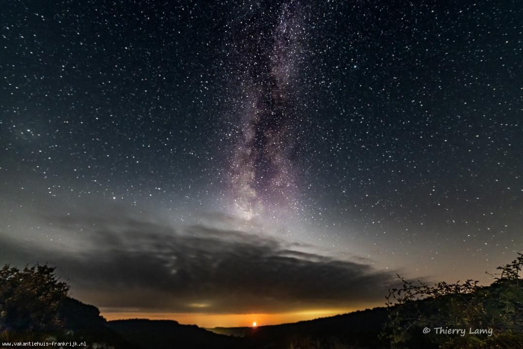 Als de avond valt, ontvouwt zich boven het huis een spectaculaire sterrenhemel. Door het ontbreken van omgevingslicht voelt het alsof de Melkweg binnen handbereik is – een betoverend schouwspel dat je nergens in de stad zult vinden.