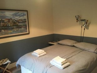 Er zijn twee slaapkamers, een slaapkamer met een tweepersoonsbed en een slaapkamer met twee eenpersoonsbedden.