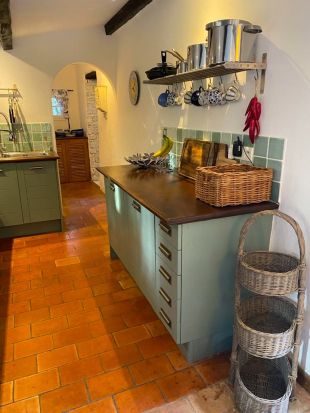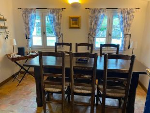In de keuken is gelegenheid om te eten aan de ruime tafel. De keuken is uitgerust met oven, keramische kookplaat, vaatwasser, Nespresso-machine en een grote koelkast met een ruim vriesvak. Vanuit de keuken ligt links een badkamer met douche, wastafel en toilet. Rechtdoor vindt u de wasmachine en naar rechts gaat u via een kleine bibliotheek de knusse woonkamer binnen. In de woonkamer is een haardpartij en staat de audio apparatuur en de TV. De woning beschikt uiteraard ook over internet. Vanuit de woonkamer is een slaapkamer met tweepersoonsbed te bereiken. Boven de woonkamer ligt de tweede slaapkamer met een éénpersoons en een tweepersoons bed. De derde slaapkamer met tweepersoonsbed en eigen douche, wastafel en toilet ligt op enkele tientallen meters van de woning in een zogenaamde cabanon.
