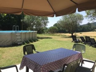 Groot vakantiehuis in natuursteen, gebouwd in 1850. Doordat het huis zo oud is zijn de muren heel dik en is airco overbodig.Het huis bevindt zich tegen de helling van een berg, waardoor je een prachtig uitzicht krijgt over het gebergte rondom. Het huis heeft 4 slaapkamers waar telkens 2 personen in kunnen slapen. Een grote tuin waar goed in gespeeld, gezonnebaad of geravot kan worden. Er is een opzetzwembad met bronwater van 7.00 op 3.5m aanwezig. Het huis heeft een lange oprit waardoor het een eindje van de weg is gelegen. Je hebt er alle rust en privacy. Het dorpje ligt 2 km verder.