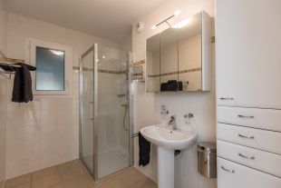 Tussen de 2 slaapkamers bevindt zich een badkamer met douche, wastafel en toilet. Beide slaapkamers zijn voorzien van airconditioning.