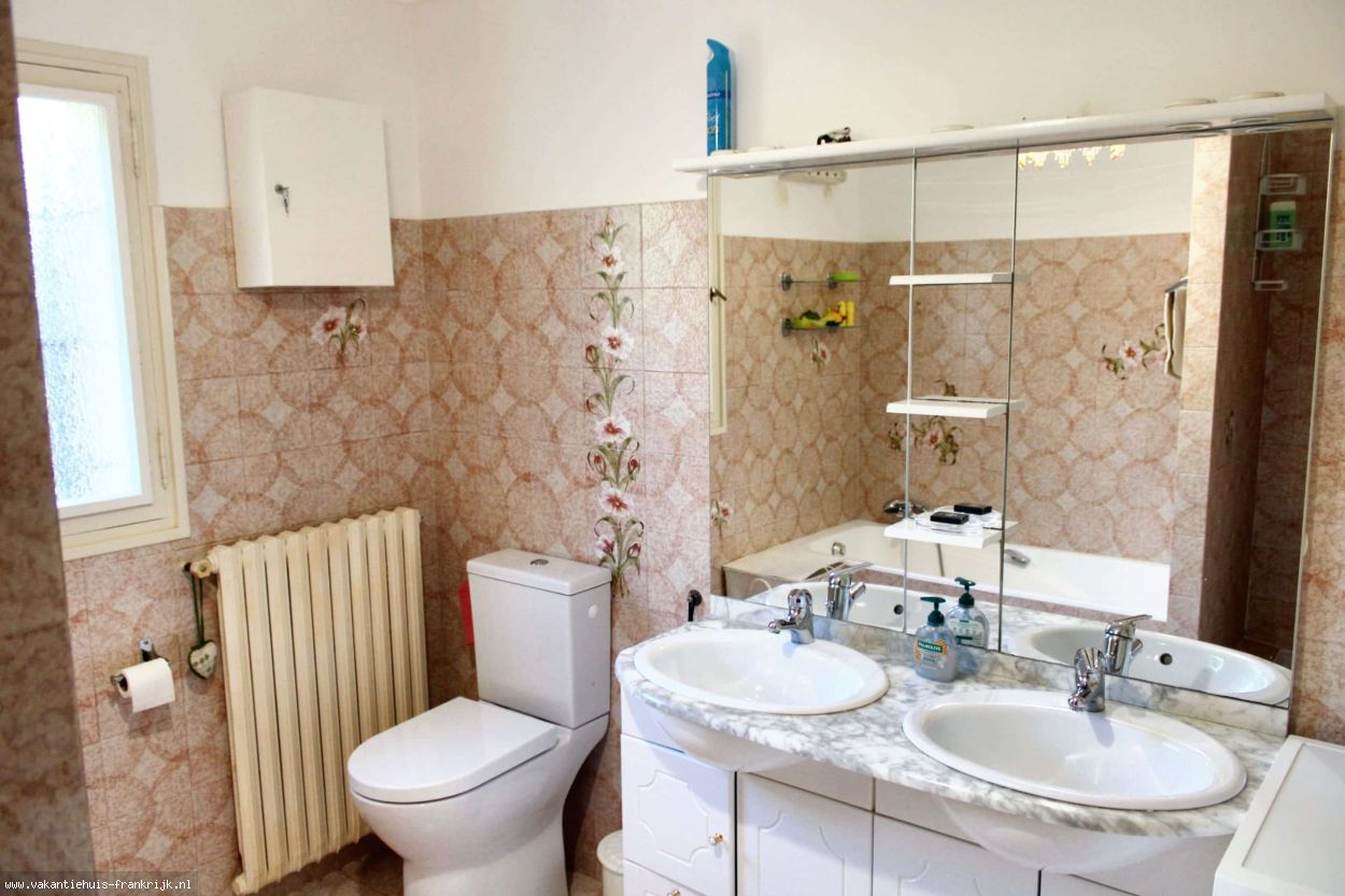 Slaapkamer 2 en 3 hebben elk een tweepersoonsbed en delen een badkamer met dubbele wastafel, ligbad, douche en toilet.