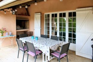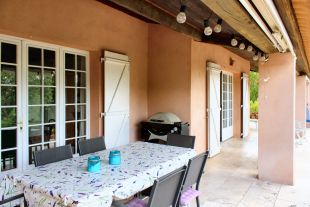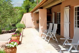 Indeling: De entree leidt naar een ruime open keuken, uitgerust met een keramisch kookstel, magnetron, vaatwasser, koelkast en een apart diepvriesgedeelte. Aangrenzend aan de keuken is de eetkamer met een grote eettafel en openslaande deuren naar het overdekte terras. De eetkamer loopt over in de woonkamer, die is voorzien van een mooie open haard, een grote flatscreen-tv (inclusief Nederlandse zenders), Chromecast, dvd-speler, stereo-installatie, Wifi-internet en opnieuw openslaande deuren naar het terras. Zowel vanuit de eetkamer als de woonkamer heeft u uitzicht op de vallei, die zich uitstrekt tot ver voorbij Salernes.