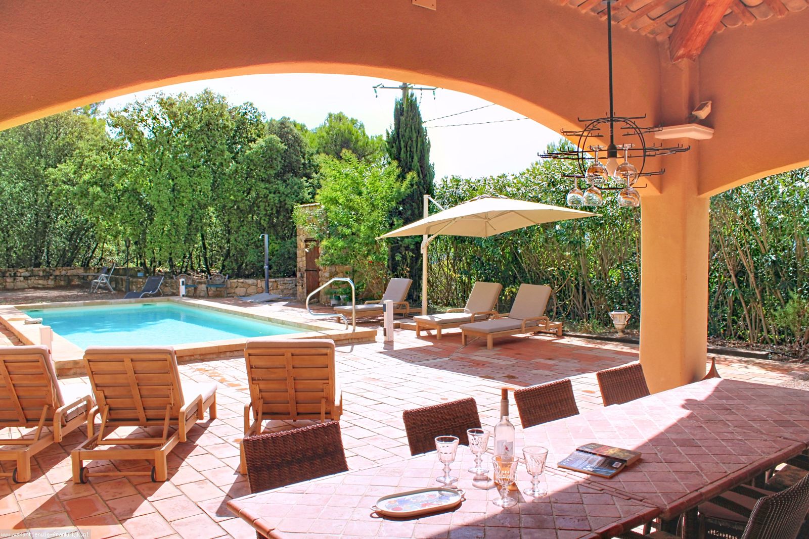 Grenzend aan het zwembad bevindt zich een overdekt terras – ideaal voor lange lunches en diners onder de sterrenhemel. Lavendelgeuren, het zachte avondlicht en het geluid van krekels zorgen voor een onvergetelijke ambiance. In het verlengde van het zwembad ligt ook een eigen petanque terrein.