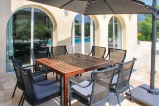 De woning is gelegen op een hoogte van 300 meter, wat zorgt voor aangenaam koele zomeravonden en nachten. Geniet van het weidse uitzicht over de omliggende bergtoppen terwijl je ontspant op het terras of in het zwembad. De stranden van Sainte-Maxime en Fréjus liggen op ongeveer 35 kilometer afstand, waardoor deze villa de perfecte uitvalsbasis is voor een ontspannen en luxe vakantie in de Provence.U bereikt de woning vanaf een privé-weg die uitkomt op een ruime oprit met voldoende parkeergelegenheid. Achter de woning ligt een groot, afgesloten terras met een ruim zwembad (10 x 5 meter) met een kindvriendelijk zitplateau. Het sfeervol aangelegde terras is voorzien van meerdere gezellige zitjes, comfortabele ligbedden en een gasbarbecue. De zitplaatsen zijn deels overdekt, zodat er genoeg schaduwrijke plekken zijn. Ook is er een jeu de boules baan die u vanaf het terras kunt bereiken. De ruime opzet biedt u veel privacy.