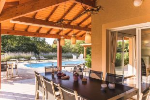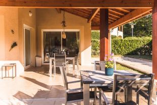 Deze villa heeft een schitterend zeer royaal overkapt terras waar het heerlijk ontbijten en borrelen is.