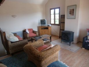 Een minibiblioteek samen met een schat aan documentatie over de regio heeft een kast apart.De houtkachel met gratis hout maakt eventuele kille avonden super gezellig. Openslaande deuren leiden je naar het boventerras met prachtig uitzicht over de omgeving. Een buitentrap brengt je naar het gelijkvloers met zeer ruim terras.