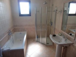 Het afzonderlijk toilet en badkamer met ligbad en douche bevinden zich eveneens op het gelijkvloers. Een bergruimte,met automatische wasmachine en waar ook electriciteitskast zich bevindt is eveneens op het gelijkvloers. De gang op het gelijkvloers wordt verder aangevuld met een trap naar de kelder (de woning is volledig onderkelderd) en een trap naar de leefruimte op het eerste verdiep. Deze leefruimte met volledig uitgeruste keuken (oven, microgolfoven,vaatwas,koffiezet,waterverwarmer,vier electrische vuren...), zithoek met T.V.,D.V.D,radio, C.D... Hier is eveneens een divan/bed voor de 7e en 8e persoon.