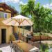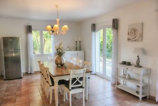 Zowel vanuit de woonkamer en de keuken is er zicht op de mooi aangelegde tuin. Aan de woonkamer grenzend is er een zonnig terras met een grote 10 pers. eettafel. De grote dakplataan (Murier) naast de eettafel zorgen voor de gewenste schaduw. Vanaf dit terras leidt er een t...